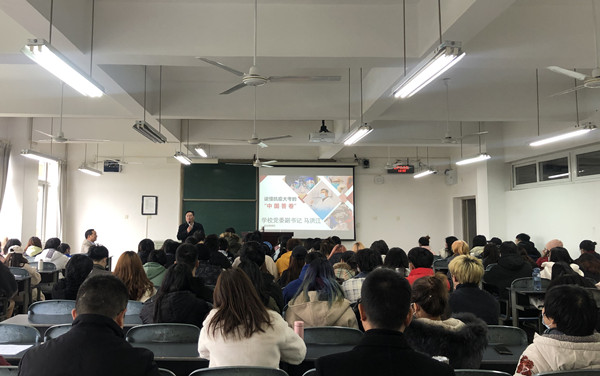 2020年12月14日下午,公司党委副书记马洪江走进龙泉校区2406教室,为本科生旅游管理19级127名员工,上了一堂精彩的思政课《形势与政策2》,讲授了2学时的课程专题--读懂抗疫大考的“中国答卷”,新葡的京集团35222vip书记副书记及该课程的任课教师,到场听课观摩学习。