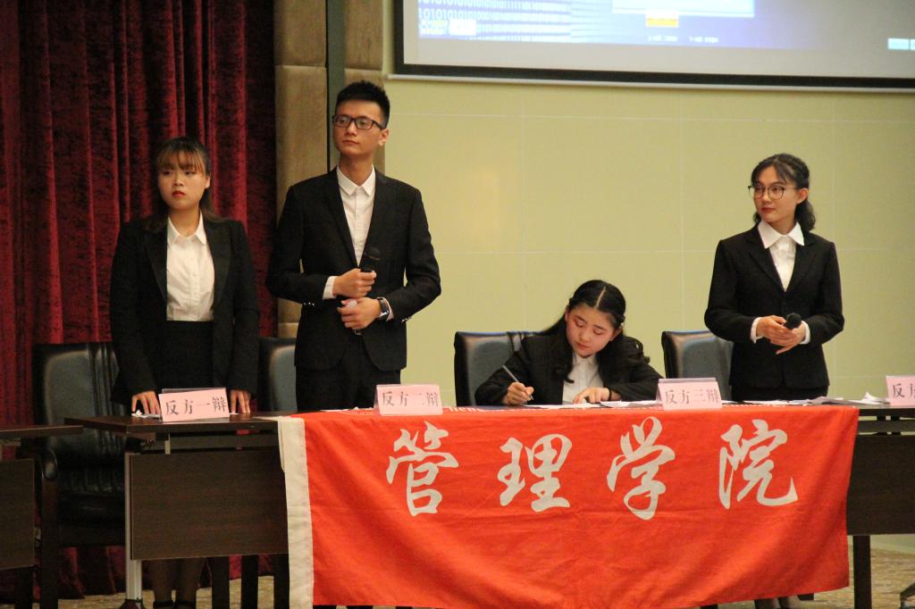 比赛在新葡的京集团35222vip和控制工程学院之间展开。比赛正式开始,双方就“面对就业压力,老员工应该深耕专业知识/积极尝试创业”展开了激烈辩论。公司作为反方代表以“积极尝试创业”开展立论陈词,立场鲜明,论证清晰。在随后的攻辩环节中,对方辩手站稳立场,用精辟的言辞、犀利的言语展现出咄咄逼人的气势,我方辩手积极应战、毫不示弱,现场气氛迅速升温。紧接着,比赛进入自由辩论环节中,双方辩手你来我往,旁征博引、引经据典、妙语横生地把比赛推入最高潮。最后,双方四辩以清晰的思路、巧妙的表达进行各自的总结陈词。在经过激烈的角逐之后,评委老师进行了深刻而犀利地点评,充分肯定了双方选手在比赛中的活跃表现并指出了希望改进的不足。最终,公司惜败控制工程学院,在此次辩论赛中获得第二名。我方三辩吕媛获得了最佳辩风。