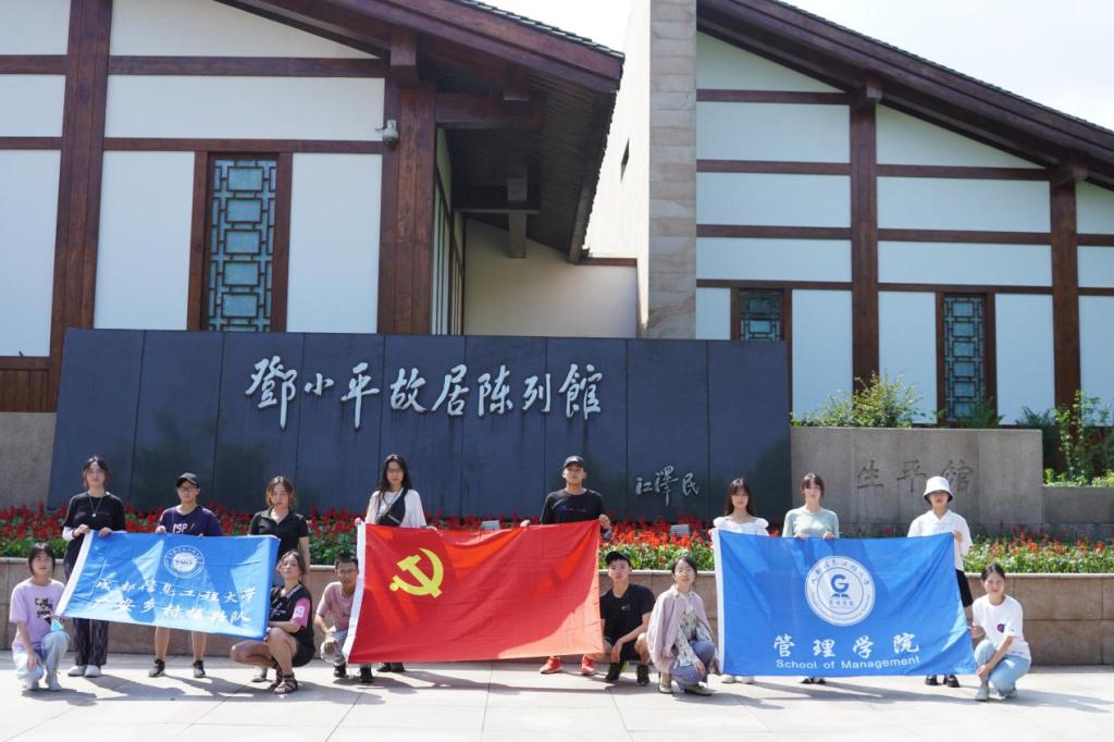 队伍随后参观了邓小平故居陈列馆,队员观察到邓小平陈列馆一字排开,三个青瓦坡形屋面,三叠三起,了解到陈列馆建筑设计蕴寓着邓小平“三落三起”的传奇人生和丰功伟绩。陈列馆中的文物向实践队伍诉说着历史故事:毛泽东评价邓小平的手稿、国庆35周年的检阅车、邓小平参加国务活动和视察南方时穿过的服装等许多见证重要历史时刻的文物向队伍展现了那个时代的风采,讲述了属于“春天的故事”。